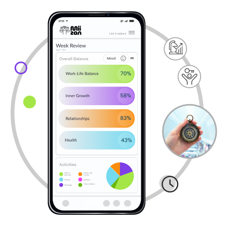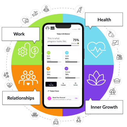 Miizan’s unique life balance score shows how your life pillars align — so you can adjust before stress turns into burnout.